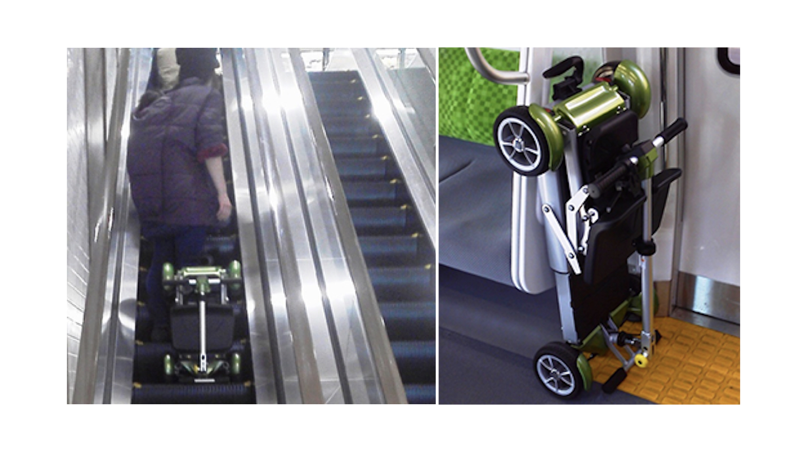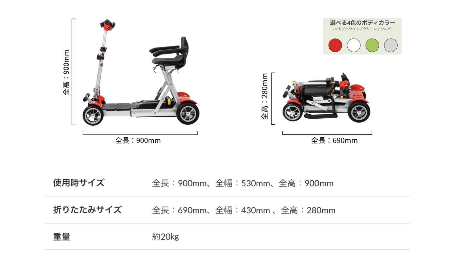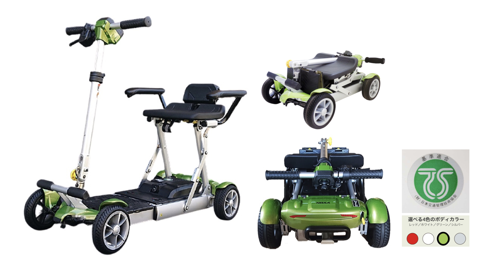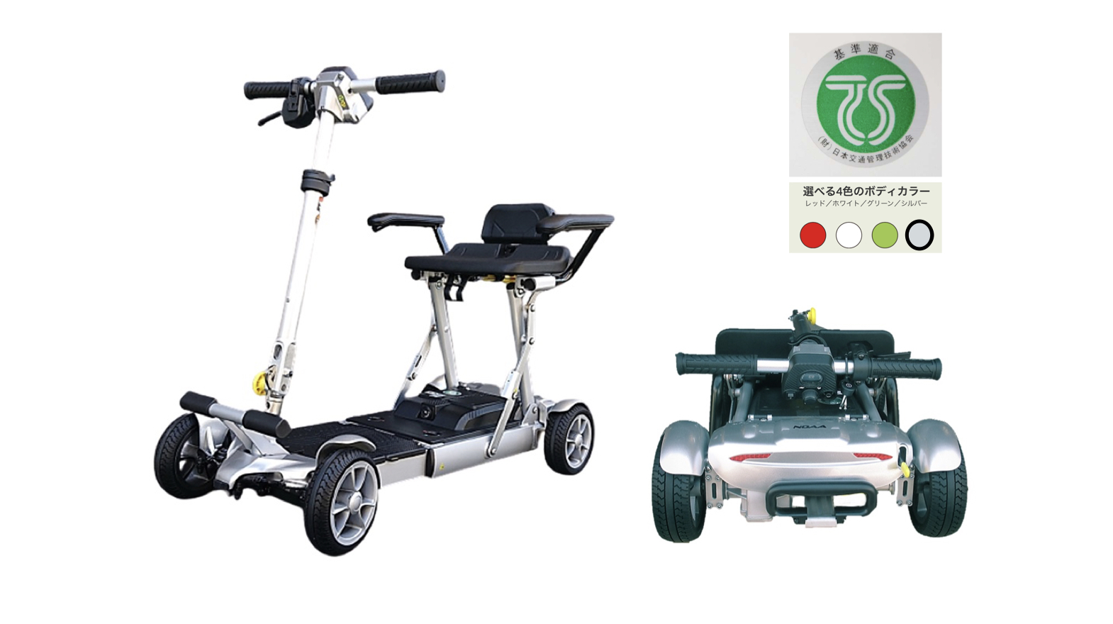 折り畳んで、スーツケースのように引いて持ち運びができる。軽自動車やタクシーのトランクにも収納できる。348,000円(非課税)。レンタルも。