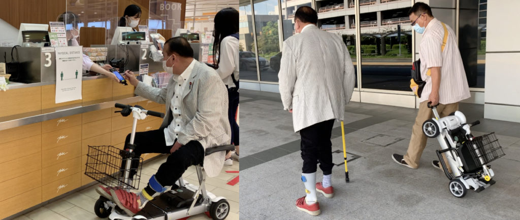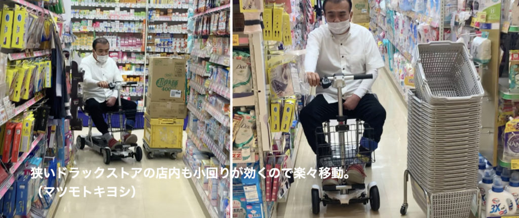 肺病を患い長距離や坂道の歩行が困難で出かけることをあきらめていました。電動カートのおかげで、念願のイケヤ、コストコを見に行きました。はずかしさが少しありましたが、何処へでも行く楽しさを発見しました。愛知県のM様